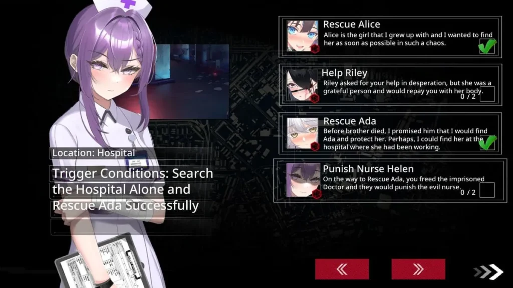 Alice, The Childhood Friend: 🎀 Alice represents a tether to the world before the fall—a symbol of innocence and a past you’re desperate to protect. Reuniting with her offers a powerful motivation to keep going. However, protecting her in this new world is a constant challenge. Her presence can be a source of strength, a liability in dangerous situations, or a moral dilemma when your sanity starts to fray. Her subplot is deeply tied to your past, uncovering memories that shape your understanding of the present chaos.